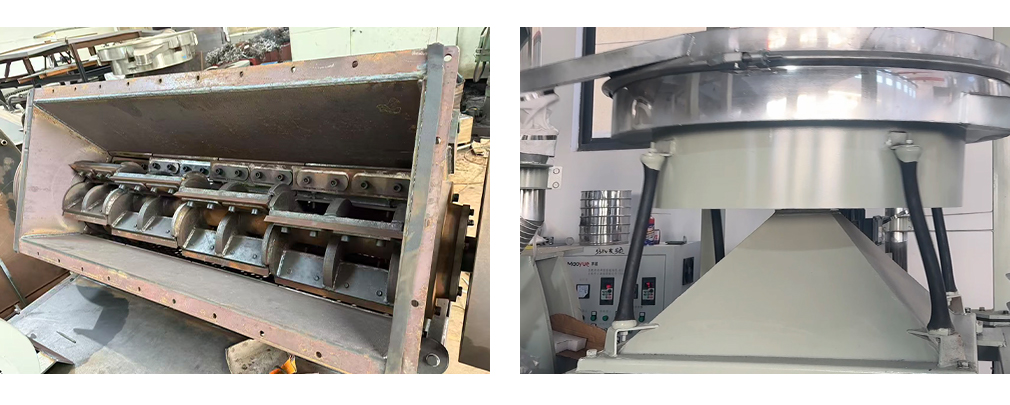 It is particularly suited for high-value recycling and regeneration of materials like PVC, PE, PP, PET, ABS, and EVA. The Mao Yue Blade-Type Crushing-Grinding Production Line excels in precision and efficiency. Its front-end employs a heavy-duty multi-blade high-speed cutting structure. The blades' rapid rotation generates continuous, powerful shearing and cutting forces, specifically optimized for medium-hardness, brittle materials. It rapidly processes waste injection-molded parts, bottles, film clumps, electrical casings, and rigid panels into uniform small pieces. It delivers high cutting efficiency and excellent particle size consistency, completely avoiding the common issues of dust dispersion, over-grinding, material entanglement, blade jamming, and machine shutdowns associated with hammer-type crushers. It offers broad adaptability and extended maintenance intervals. Coarsely crushed material seamlessly interfaces with Mao Yue disc mills (available in 500/600/800 models), equipped with DC53 high-grade mold steel grinding discs.